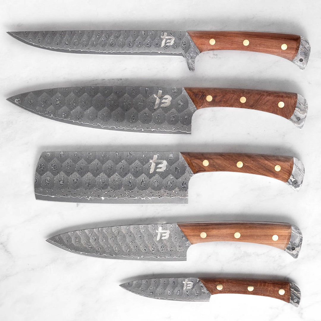I’m a professional chef in a busy fast-paced kitchen and these knives are no joke... sharper than any knives we have in the kitchen. Great weight and balance ratio and I love the raw look. I also take them with me whenever I head out of the city. Very happy!