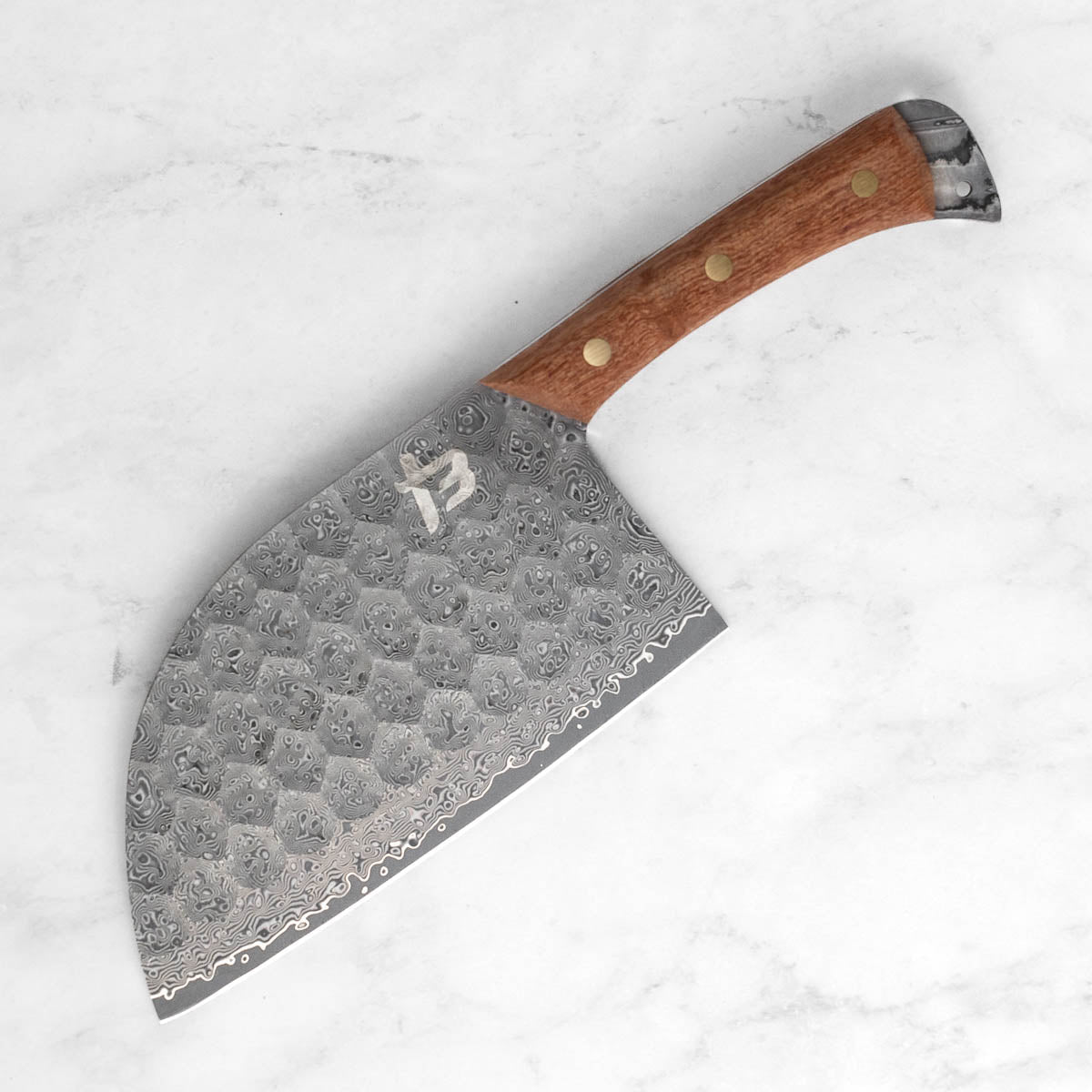 Masterfully chop, slice, and dice with ease using our 7" Damascus Steel Serbian Cleaver, designed to handle everything from thick cuts of meat to fine vegetable mincing with precision and durability.